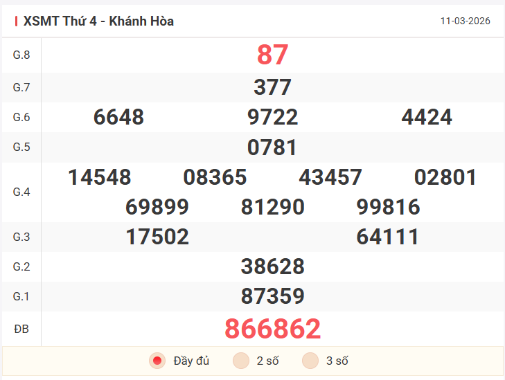 Cùng xem lại bảng kết quả XSMT kỳ trước 11/3/2026: