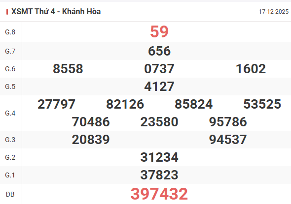 Cùng xem lại bảng kết quả XSMT kỳ trước 17/12/2025: