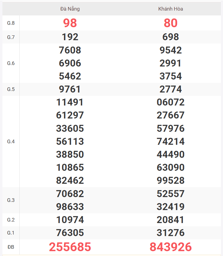 | Giải 8 | 56 |