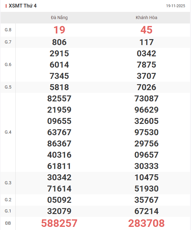 Dự đoán, soi cầu Xổ Số Miền Trung thứ 4 ngày 26/11/2025 của tỉnh Đà Nẵng và Khánh Hòa. Bật mí số có tỉ lệ về nhiều nhất trong xsmt trực tiếp hôm nay 26/11 Chọn ra các cặp xỉu chủ đẹp, bao lô bạch thủ, song thủ lô cho xoso miền Trung ngày 26/11. Soi lô đề XSMT chính xác 100%.
