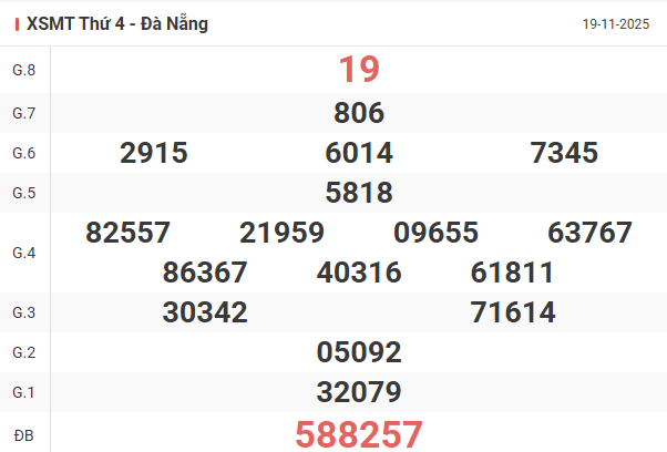 Cùng xem lại bảng kết quả XSMT kỳ trước 19/11/2025: