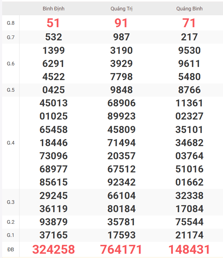 | Giải 8 | 72 |