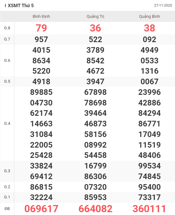 Cùng xem lại bảng kết quả XSMT kỳ trước 27/11/2025: