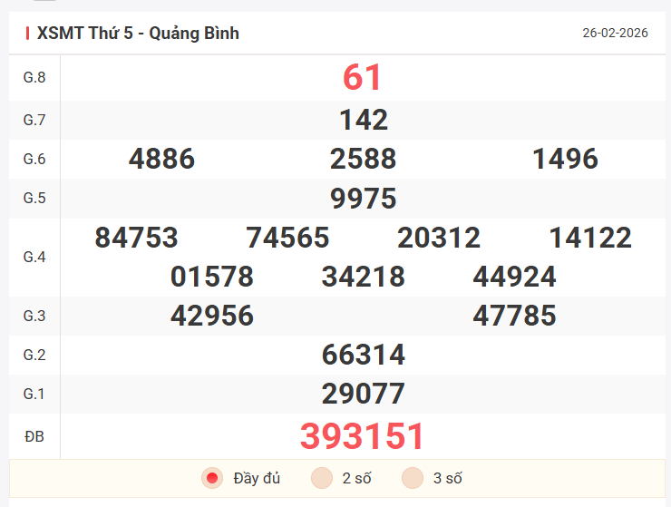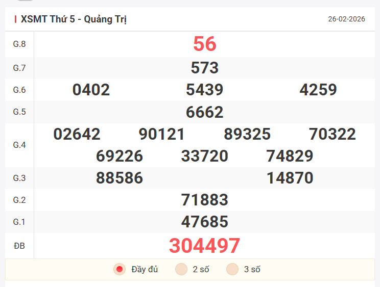 Cùng xem lại bảng kết quả XSMT kỳ trước 26/2/2026: