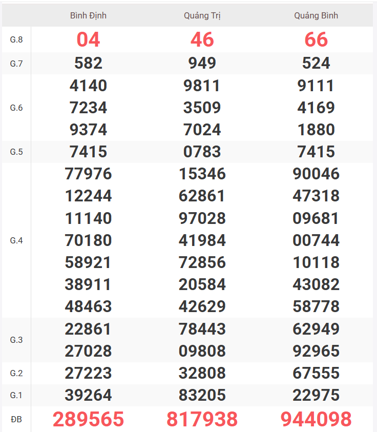 | Giải 8 | 25 |