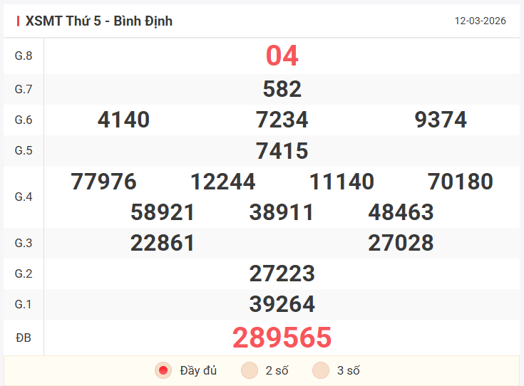 | Giải 8 | 11 |