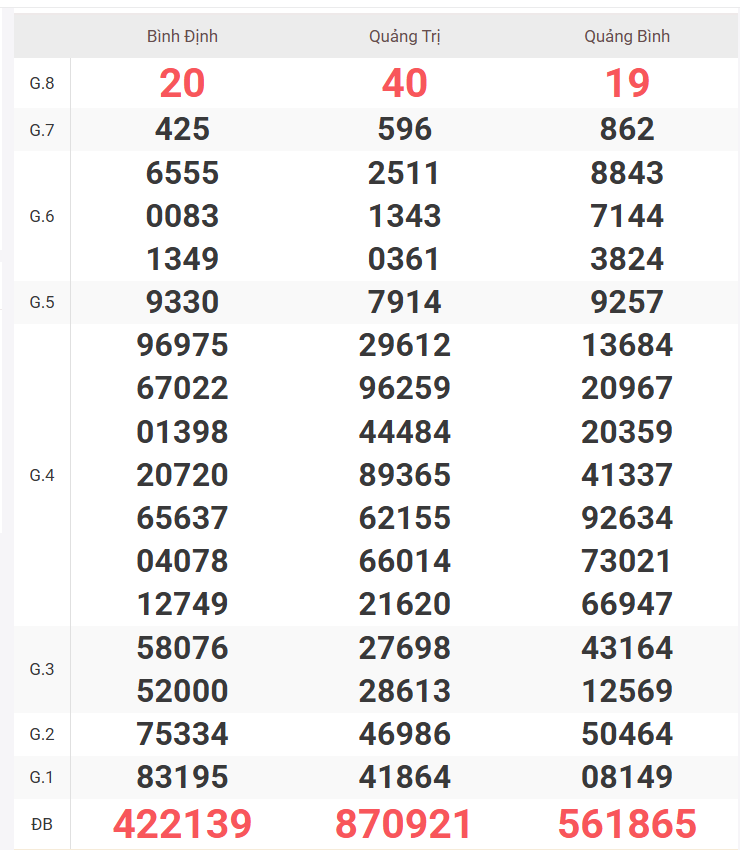 | Giải 8 | 52 |
