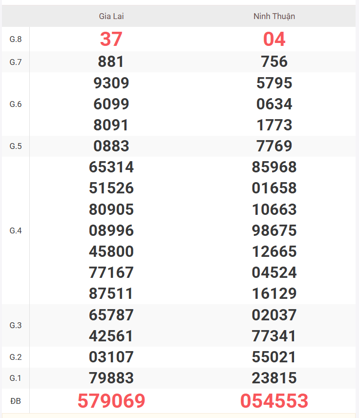 | Giải 8 | 23 |