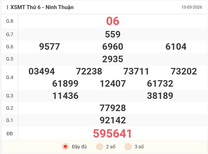 Cùng xem lại bảng kết quả XSMT kỳ trước 13/3/2026: