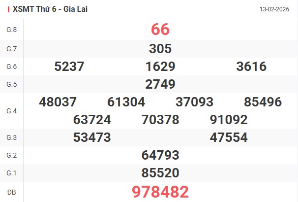 Cùng xem lại bảng kết quả XSMT kỳ trước 13/2/2026: