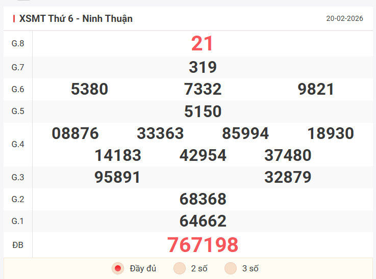 Cùng xem lại bảng kết quả XSMT kỳ trước 20/2/2026:
