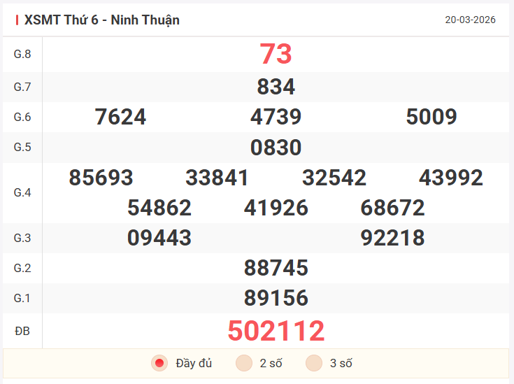 Cùng xem lại bảng kết quả XSMT kỳ trước 20/3/2026: