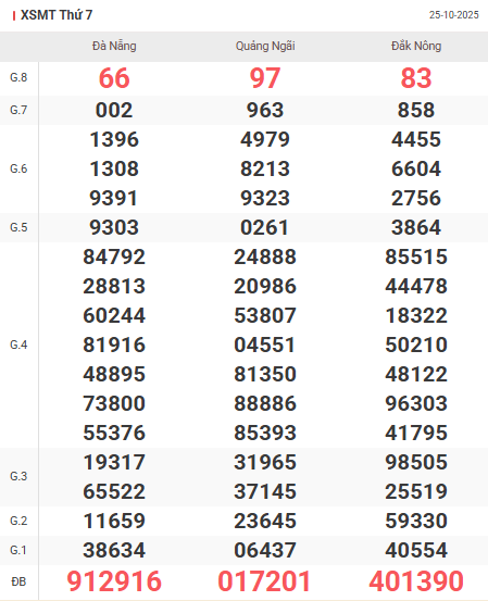 Dự đoán, soi cầu Xổ Số Miền Trung thứ 7 ngày 01/11/2025 của tỉnh Đà Nẵng, Đắk Nông và Quảng Ngãi. Bật mí số có tỉ lệ về nhiều nhất trong xsmt trực tiếp hôm nay 01/11 – Chọn ra các cặp xỉu chủ đẹp, bao lô bạch thủ, song thủ lô cho xoso miền Trung ngày 01/11. Soi lô đề XSMT chính xác 100%.