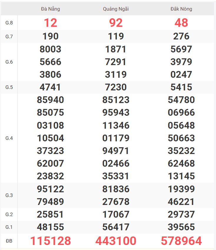 | Giải 8 | 63 |