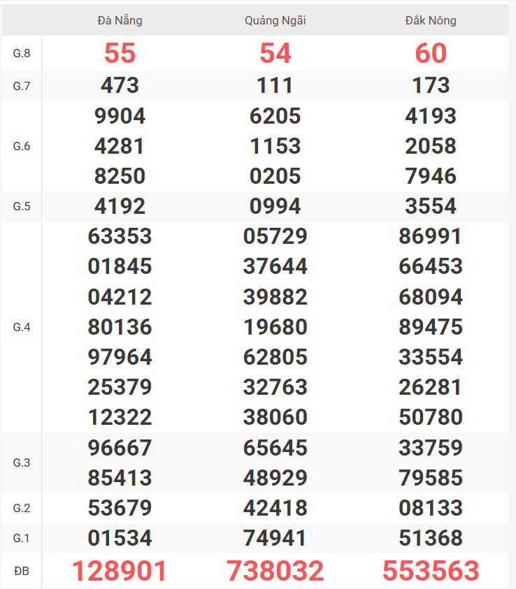 | Giải 8 | 66 |