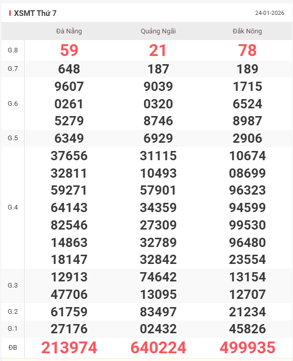 Dự đoán, soi cầu Xổ Số Miền Trung thứ 7 ngày 31/1/2026 của tỉnh Đà Nẵng, Đắk Nông và Quảng Ngãi. Bật mí số có tỉ lệ về nhiều nhất trong xsmt trực tiếp hôm nay 31/1 – Chọn ra các cặp xỉu chủ đẹp, bao lô bạch thủ, song thủ lô cho xoso miền Trung ngày 31/1. Soi lô đề XSMT chính xác 100%.