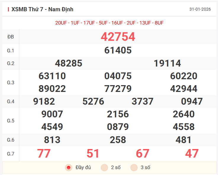 Tổng hợp kết quả xsmb hôm qua thứ 7 ngày 31/01/2026