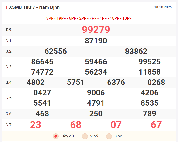 Tổng hợp kết quả xsmb hôm qua thứ 7 ngày 18/10/2025