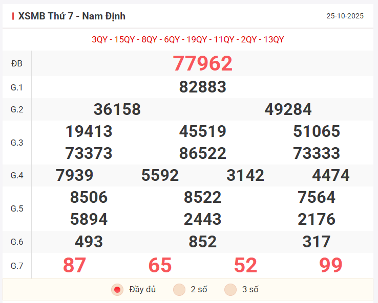 Tổng hợp kết quả xsmb hôm qua thứ 7 ngày 25/10/2025