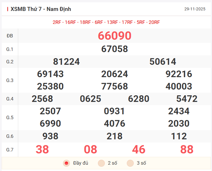 Tổng hợp kết quả xsmb hôm qua thứ 7 ngày 29/11/2025