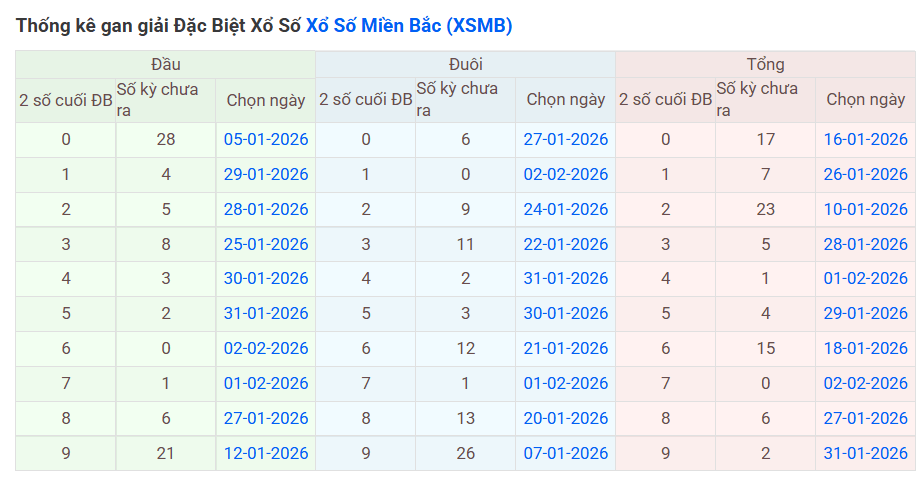 => Chi tiết thống kê đầu đuôi giải đặc biệt xem tại: