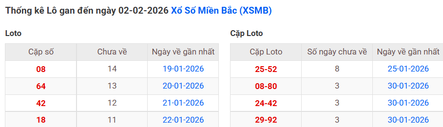 ⇒ Click vào để xem tổng hợp thông tin lô gan và cặp loto của xổ số miền Bắc tại: