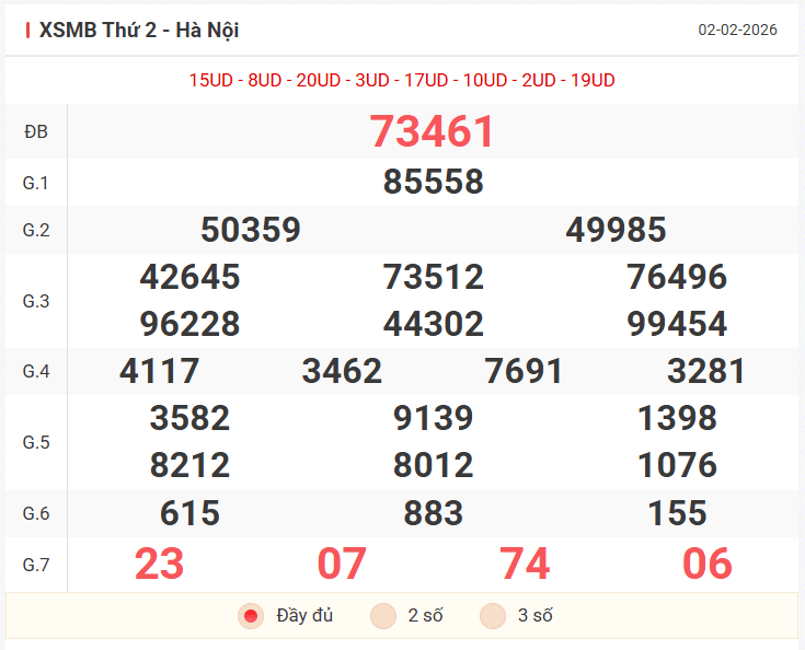 Tổng hợp kết quả xsmb hôm qua thứ 2 ngày 02/02/2026