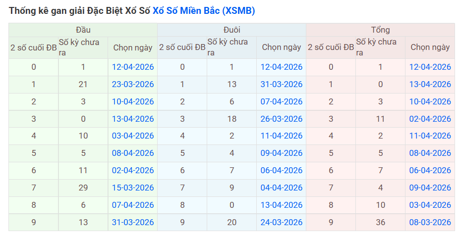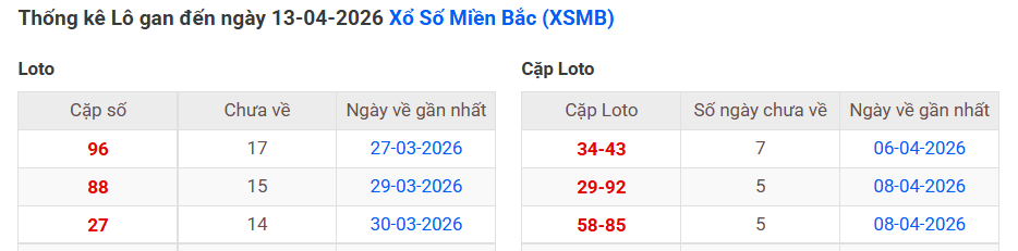 ⇒ Click vào để xem tổng hợp thông tin lô gan và cặp loto của xổ số miền Bắc tại: