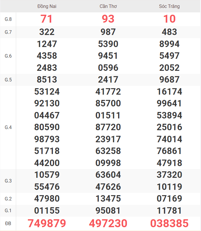 – Thứ 4 do đài Đồng Nai, Cần Thơ, Sóc Trăng mở thưởng.