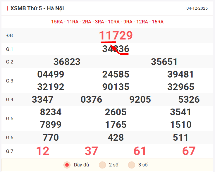 Để đưa ra dự đoán cho khung 3 ngày cuối tuần, chúng ta sẽ dựa trên kết quả của ngày thứ 5 04/12/2025, cùng nhau xem lại bảng kết quả có những điểm nhấn gì nhé!
