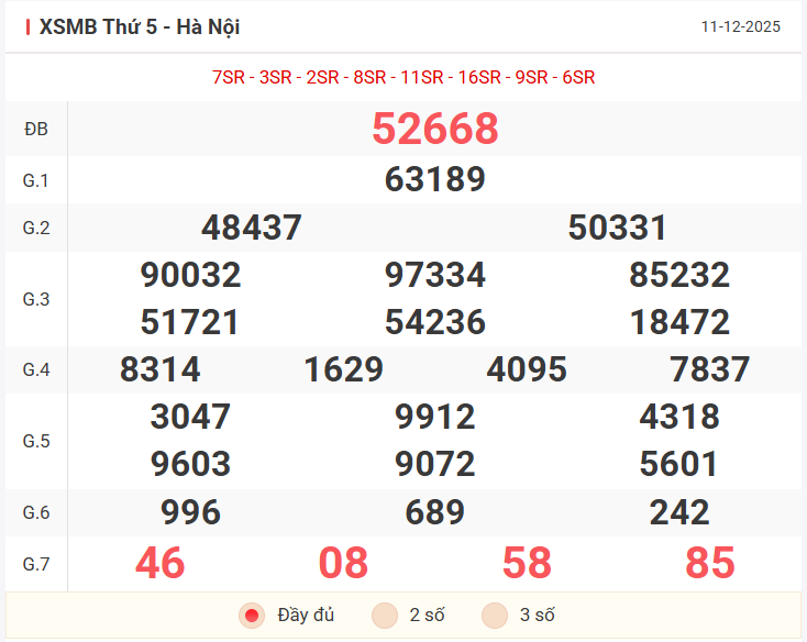 Để đưa ra dự đoán cho khung 3 ngày cuối tuần, chúng ta sẽ dựa trên kết quả của ngày thứ 5 11/12/2025, cùng nhau xem lại bảng kết quả có những điểm nhấn gì nhé!