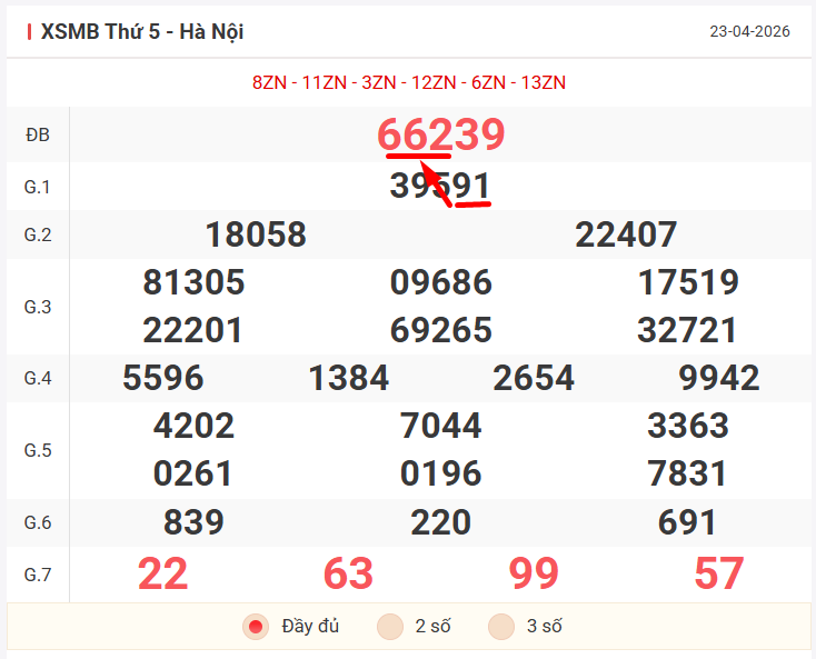 Để đưa ra dự đoán cho khung 3 ngày cuối tuần, chúng ta sẽ dựa trên kết quả của ngày thứ 5 23/04/2026, cùng nhau xem lại bảng kết quả có những điểm nhấn gì nhé!