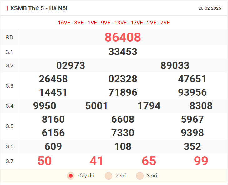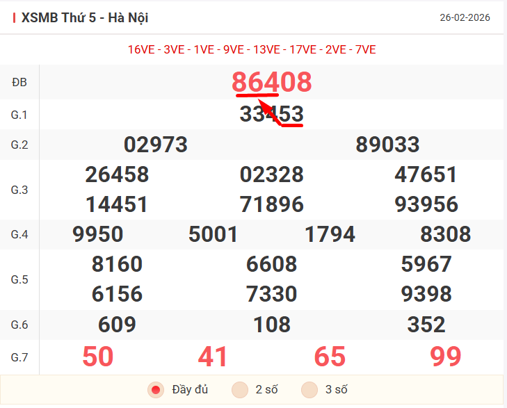 Để đưa ra dự đoán cho khung 3 ngày cuối tuần, chúng ta sẽ dựa trên kết quả của ngày thứ 5 26/02/2026, cùng nhau xem lại bảng kết quả có những điểm nhấn gì nhé!