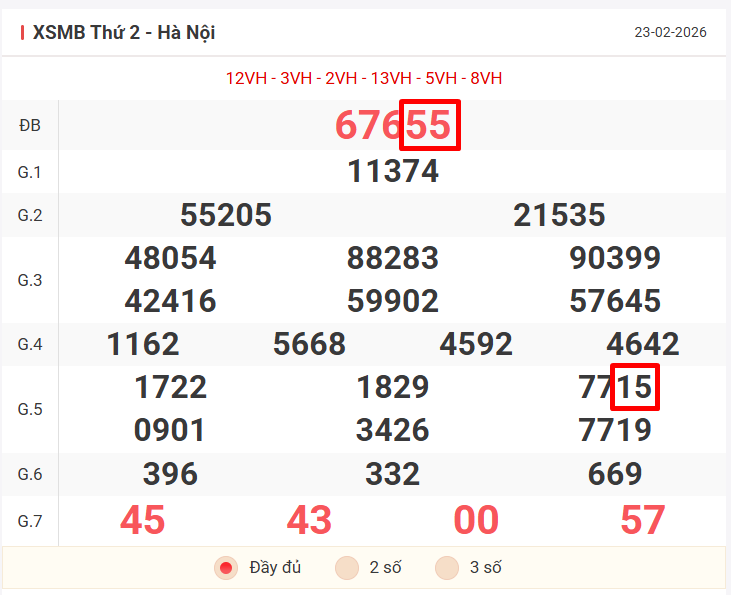 – Lô vip cho ngày 23/02/2026
