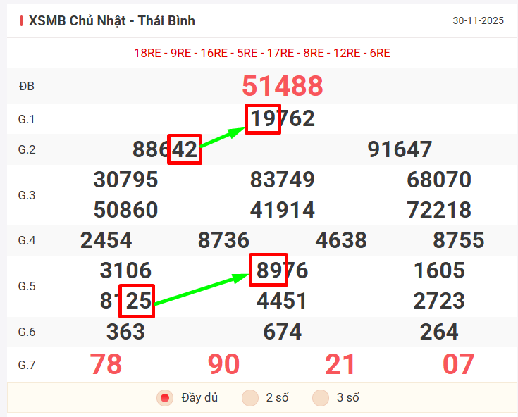 Như vậy, chúng ta sẽ đưa ra dự đoán đầu – đuôi đặc biệt chạy tuần đến hết 07/12/2025 như sau: