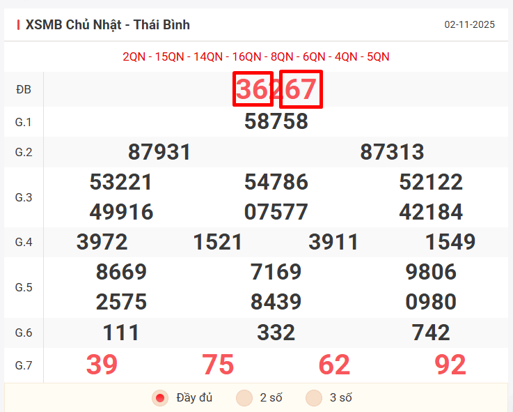 Để đưa ra dự đoán soi cầu đặc biệt tuần mới và khung 4 ngày đầu tuần, chúng ta sẽ dựa trên kết quả của ngày chủ nhật 02/11/2025, cùng nhau xem lại bảng kết quả ngày hôm qua có những điểm nhấn gì nào!