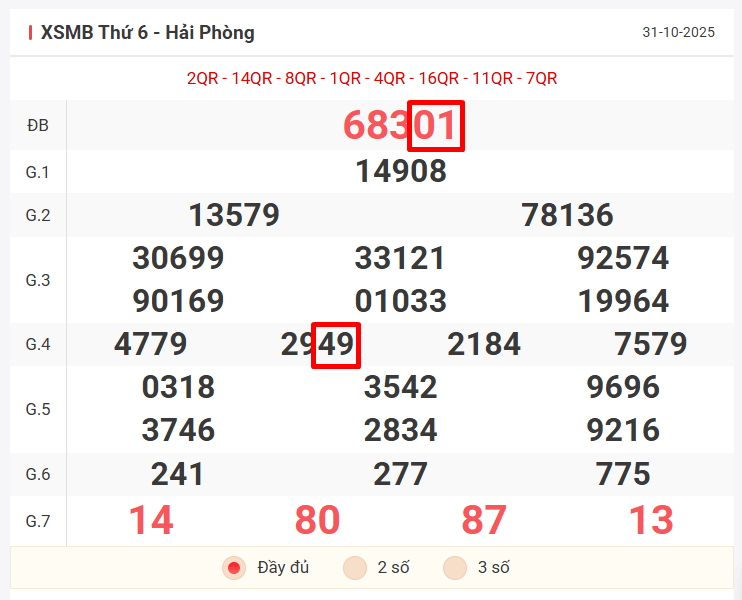 Như vậy, chúng ta sẽ đưa ra dự đoán đầu – đuôi đặc biệt chạy tuần đến hết 09/11/2025 như sau: