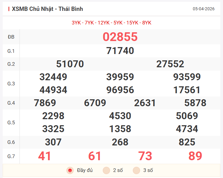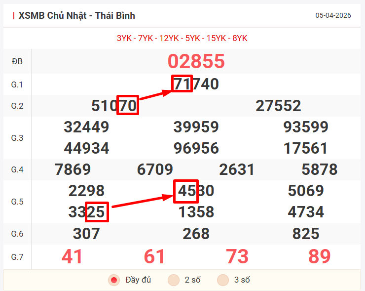 Để đưa ra dự đoán soi cầu đặc biệt tuần mới và khung 4 ngày đầu tuần, chúng ta sẽ dựa trên kết quả của ngày chủ nhật 05/04/2026, cùng nhau xem lại bảng kết quả ngày hôm qua có những điểm nhấn gì nào!