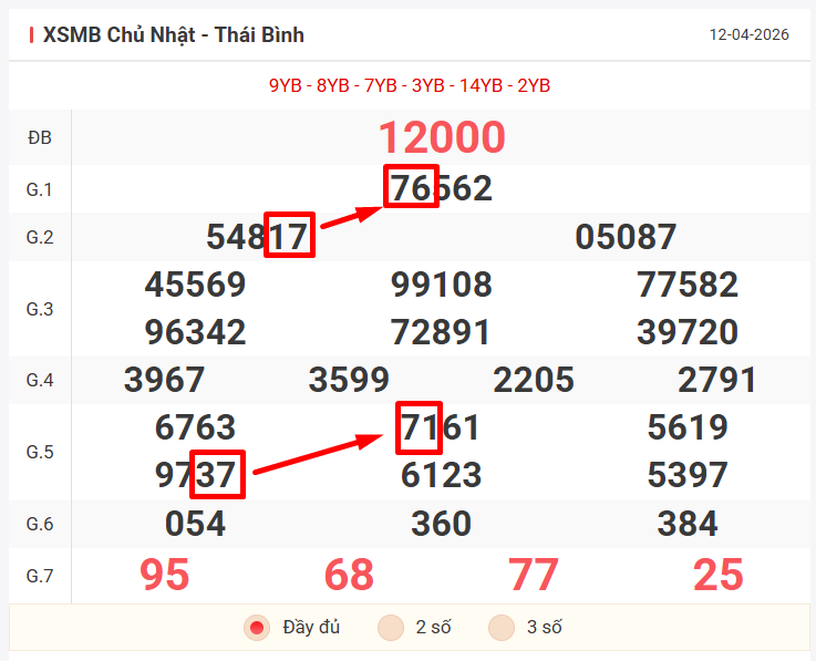 Để đưa ra dự đoán soi cầu đặc biệt tuần mới và khung 4 ngày đầu tuần, chúng ta sẽ dựa trên kết quả của ngày chủ nhật 12/04/2026, cùng nhau xem lại bảng kết quả ngày hôm qua có những điểm nhấn gì nào!