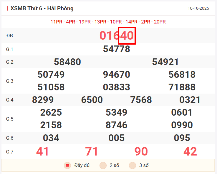 – Lô vip cho ngày 10/10/2025