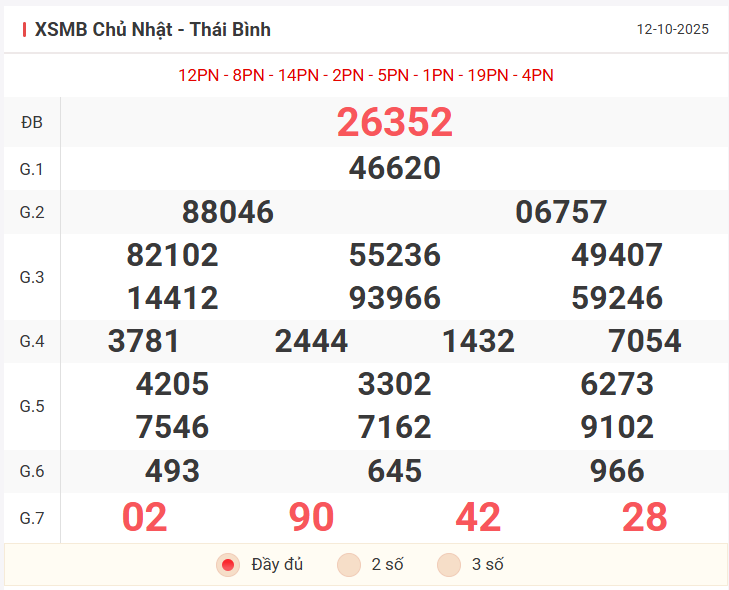 Để đưa ra dự đoán soi cầu đặc biệt tuần mới và khung 4 ngày đầu tuần, chúng ta sẽ dựa trên kết quả của ngày chủ nhật 12/10/2025, cùng nhau xem lại bảng kết quả ngày hôm qua có những điểm nhấn gì nào!