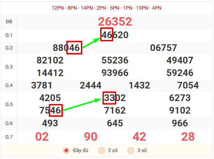 Kết quả giải đặc biệt 26352, ghép chạm thẳng – bóng 3 số đầu được dàn đề rút gọn như sau: