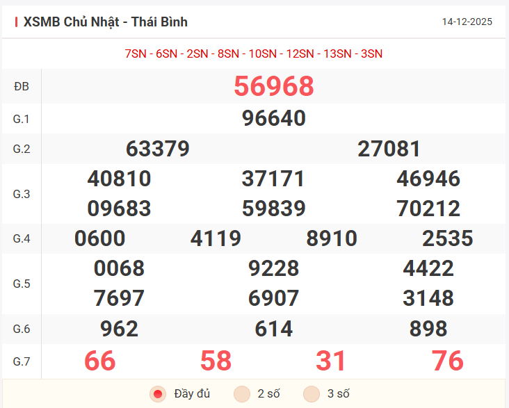 Để đưa ra dự đoán soi cầu đặc biệt tuần mới và khung 4 ngày đầu tuần, chúng ta sẽ dựa trên kết quả của ngày chủ nhật 14/12/2025, cùng nhau xem lại bảng kết quả ngày hôm qua có những điểm nhấn gì nào!