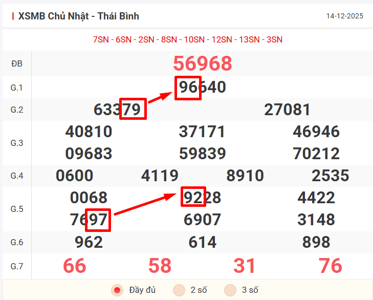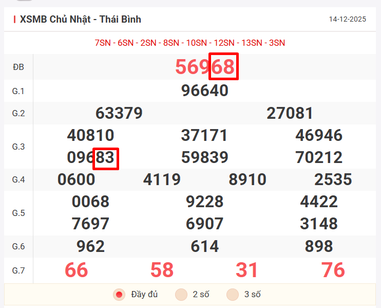 Như vậy, chúng ta sẽ đưa ra dự đoán đầu – đuôi đặc biệt chạy tuần đến hết 21/12/2025 như sau: