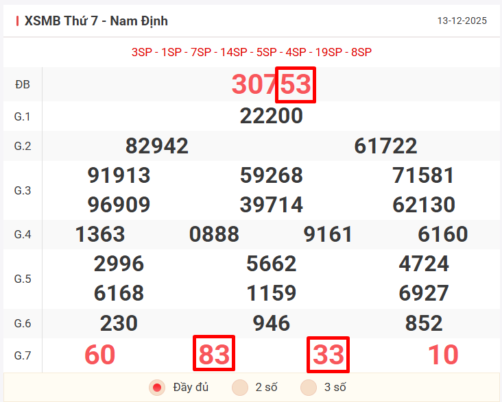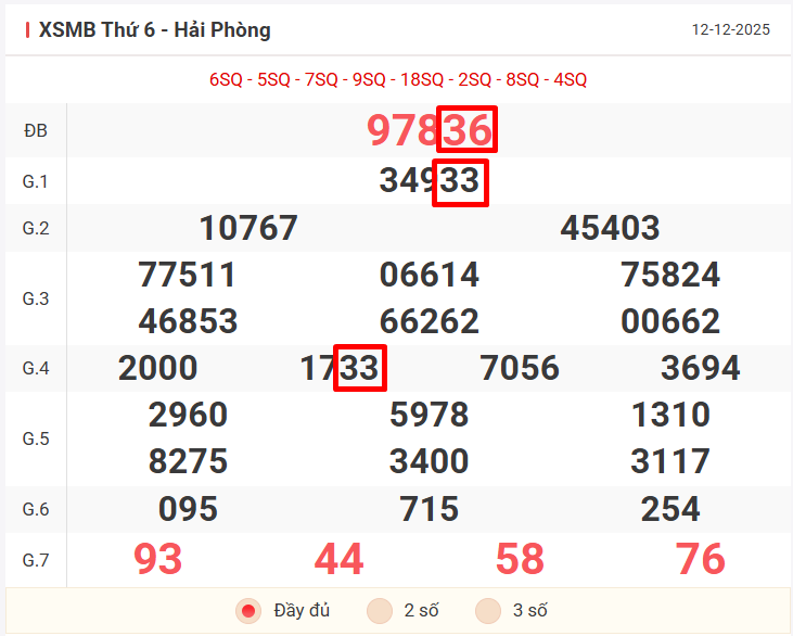 Thứ 6 ngày 12/12 về con Đặc Biệt Đầu 3, lô 33 x 2 nháy