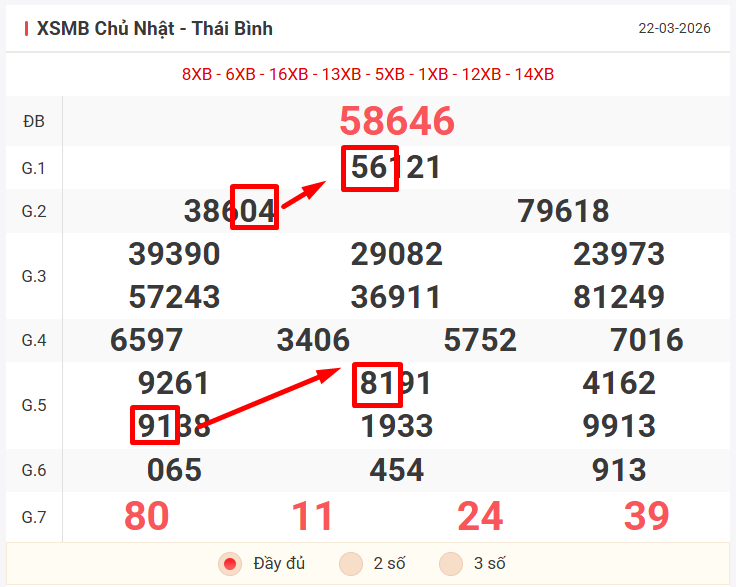 Tiếp theo, để dự đoán đuôi giải đặc biệt, chúng ta sẽ dựa vào 2 số đầu giải đặc biệt là 58 tổng 3, bóng 8→ Đặc biệt tuần sẽ có đuôi 3 – đuôi 8