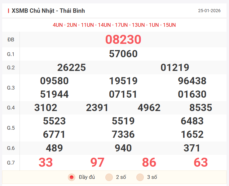 Để đưa ra dự đoán soi cầu đặc biệt tuần mới và khung 4 ngày đầu tuần, chúng ta sẽ dựa trên kết quả của ngày chủ nhật 25/01/2026, cùng nhau xem lại bảng kết quả ngày hôm qua có những điểm nhấn gì nào!