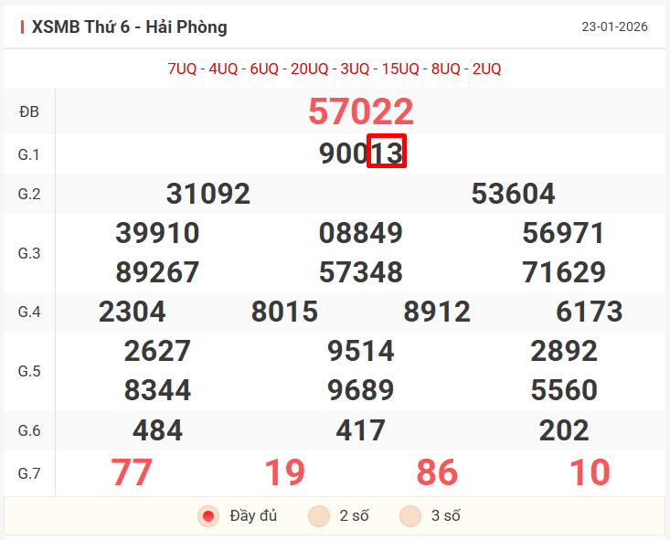 – Lô vip cho ngày 23/01/2026