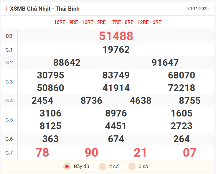 Tổng hợp kết quả xsmb hôm qua Chủ Nhật ngày 30/11/2025