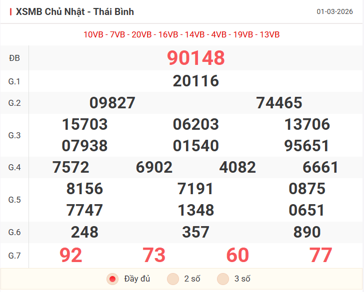 Tổng hợp kết quả xsmb hôm qua Chủ Nhật ngày 01/03/2026